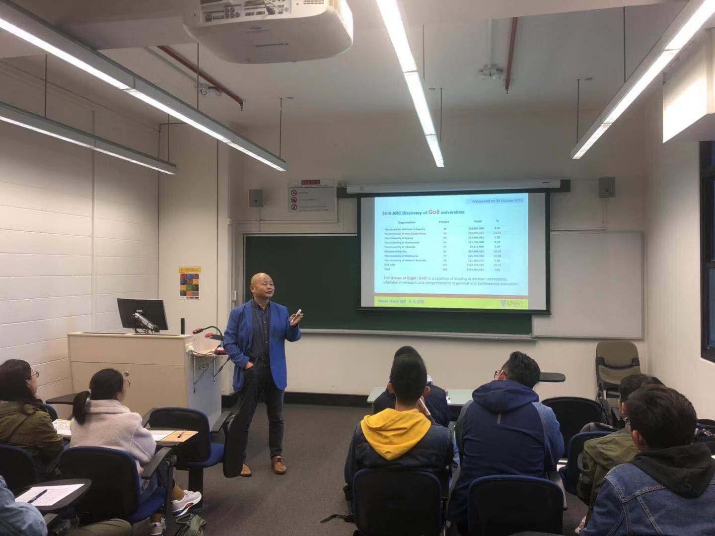 为同学们讲授电子信息类专业课程的Gang-ding Peng教授,是新南威尔士大学光电子研究中心主任,美国光学学会会士、国际光学工程学会会士。Peng教授对专业课程基本原理深入浅出的讲解,对科学前沿的分析都使同学们受益匪浅。彭教授还邀请同学们参观了光电子研究中心的各类实验室,了解了新一代光纤的研发过程,引起了同学们极大的兴趣。
