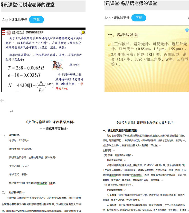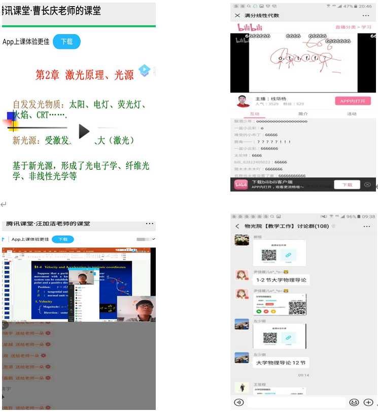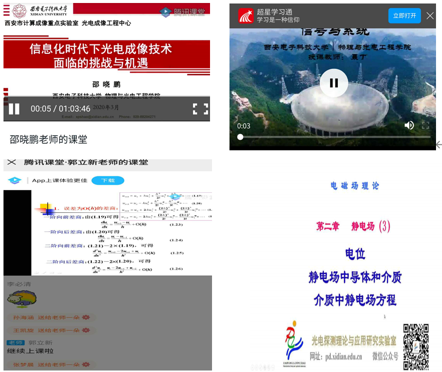 广大教师运用“雨课堂”“学在西电”“腾讯课堂”等各类平台,通过网上直播、PPT+语音、录播+答疑等方式,积极探索线上教学形式,开展多元化的课程教学及学业辅导工作,确保教学工作正常开展。很多老师结合网上教学特点和当代老员工特点,积极开展员工互动和随堂练习。针对部分时段网络平台登录难等问题,不少老师特别是老教师提前1-2个小时做好准备工作,受到员工的好评。