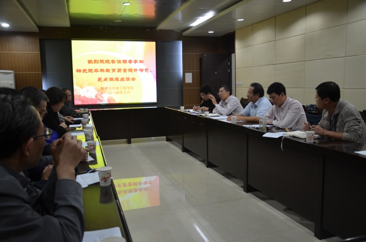 9月15日晚上,物理与光电工程公司凝炼本科教育质量提升计划亮点、特色专题座谈会在西大楼四楼会议室举行。副董事长李建东出席并讲话,公司执行经理郭立新主持会议。