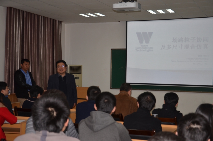 3月20日上午,应公司执行经理郭立新教授邀请,美国WCT公司(Wave Computation Technologies, Inc.以开发尖端计算机工程模拟仿真技术为核心业务)副总裁赵博博士在西大楼Ⅲ-405学术报告厅作了题为“场-路-粒子及多尺寸混合仿真技术”的学术报告。郭立新等多位老师及百余名研究生参加了本次报告会。