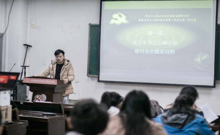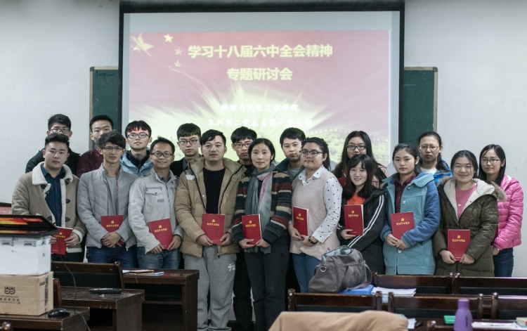 开展“两学一做”学习教育是新形势下加强党的思想政治建设、推动全面从严治党的一项重大部署。2016年11月17日晚,公司审计处副处长解萍同物理与光电工程公司第二党总支第一党支部的同学一道学习了党的十八届六中全会内容,物理与光电工程公司第二党总支部书记石柳主持了本次研讨会。