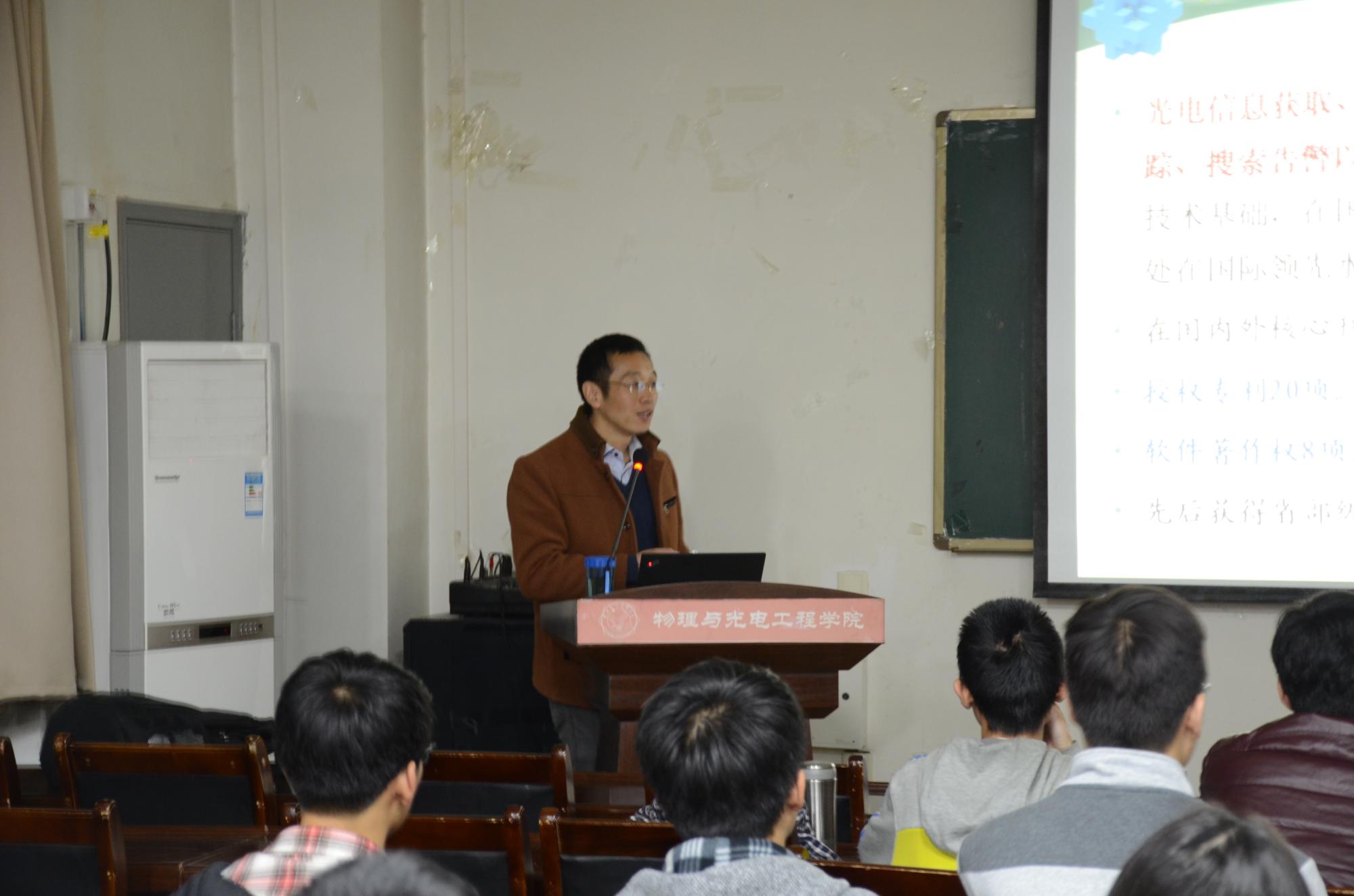(通讯员:王佳乐)2017年11月22日,英国正版365官方网站物理与光电工程公司副经理周慧鑫教授受邀为同学们进行公司大讲堂交流。19点钟,周慧鑫教授准时出现在E楼三区315教室为同学们带来了以红外技术为主题的讲座,大二大三的同学参与了此次活动。