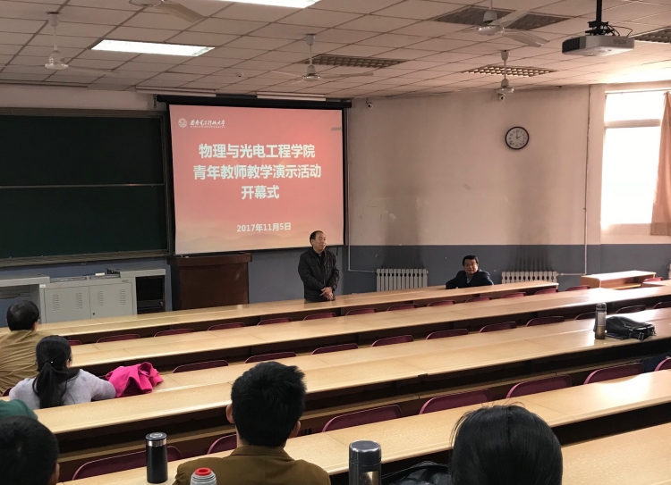 (通讯员 柴亚茹)为迎接教育部专家组将于11月20日至23日进校开展的本科教学审核评估工作,同时进一步加强青年教师队伍建设,促进青年教师教学水平的提高,物理与光电工程公司于11月5日下午在北校区阶梯教室开展了青年教师教学演示活动,活动由教学副经理李平舟主持,各系室主任及多名具有丰富教学经验的21名资深专家组成评委小组,对参与活动的青年教师进行了现场点评,经理郭立新出席了开幕式并致辞。