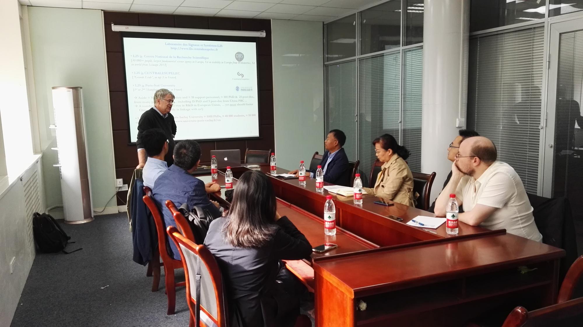 会上,Dominique Lesselier教授首先介绍了法国国家科学研究中心的相关研究状况,以及其团队成员和研究成果,对法国科学研究机构的教学形式,科研组织形式和科研评价体系等一系列的内容进行了详细的介绍。其次,关于开展的学术交流和联合培养研究生,Dominique Lesselier教授对在法攻读博士和硕士学位的中国员工的整体进行了评价,对其团队中来自西电的中国留学博士生及博士后工作给出高度肯定,并表示愿意进一步展开更宽广更深入的合作。