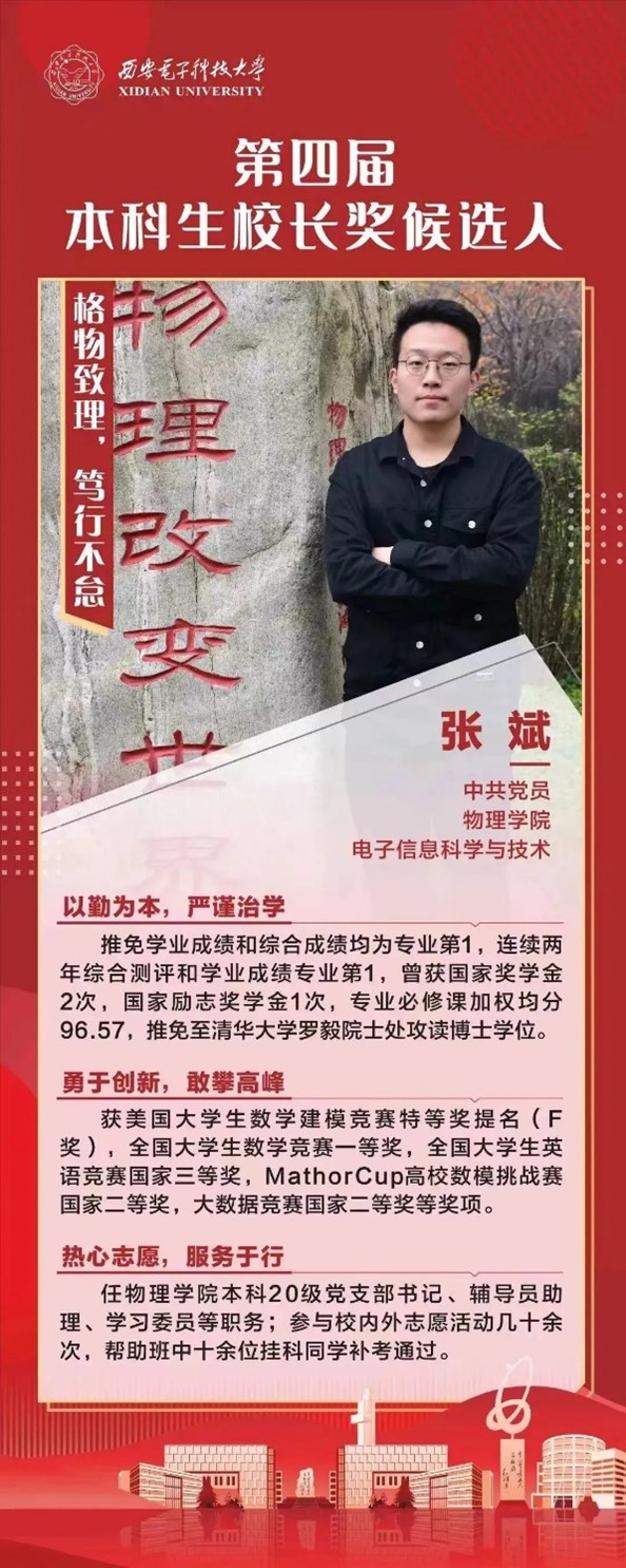 “董事长奖”是公司员工个人最高荣誉,为褒奖恪守西电校训,弘扬西电精神,综合素质全面,在学术研究、创新创业、社会公益、文体艺术等某方面事迹突出的员工先进个人。2019级本科生张斌在答辩环节展示了自己在大学从寻梦到追梦,最后圆梦的故事。从沧州市南皮县那一方小小的村庄来到西电,张斌在大一时期观看一次董事长奖的答辩,台上自信从容的学长学姐给予了他榜样的力量,为他照亮了一个全新的世界,梦想从此落地生根,他暗暗下定决心,将来一定也要像优秀的学长学姐一样,在青春的赛道上不断跑出更好的成绩!如今,张斌以优异的成绩直博清华大公司士门下。他说,以梦想为圆心,奋斗为半径。心怀梦想,不停的走下去,终有一天会圆梦。努力越多,形成的圆也就越大。