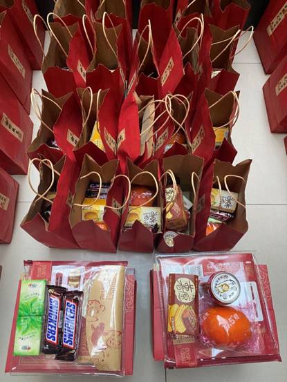 公司准备的爱心助力包外包装印有“金榜题名”,包含“心相印”纸巾、士力架、脐橙,寓意“心想事成”,同时有薯片、旺仔牛奶为同学们解压暖心,另外准备了“金榜题名”文具套装,其中有0.5mm黑色中性笔、替换笔芯、涂卡铅笔、橡皮和涂卡尺等研考所需的全套文具,保证同学们“万事俱备”,迎接“东风”,除了实用物资之外,公司精心准备了一封寄语信,里面承载着公司对员工的殷切期望和衷心祝福。