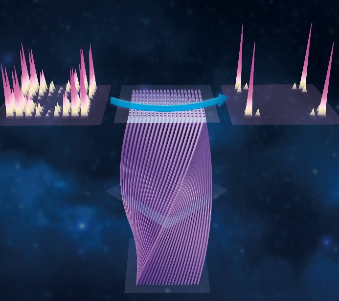 众所周知,自然界中的各种波总是倾向于向周围扩散,因此,控制波的扩散并使其局域在有限的空间内是一个长期存在的、重要的科学问题。在二维静态(无任何旋转或扭结作用)的波导阵列中,这类孤子仅仅在粒子数(在物质波系统中),或功率(在光学系统中)高于一定阈值时才能存在。旋转的周期波导阵列从本质上改变了这一现象。但是,由周期结构旋转而产生的线性和非线性效应在实验上的实现却是一个极具挑战性的难题。迄今为止,从未在实验上观察到旋转波导对波包演化行为的影响。