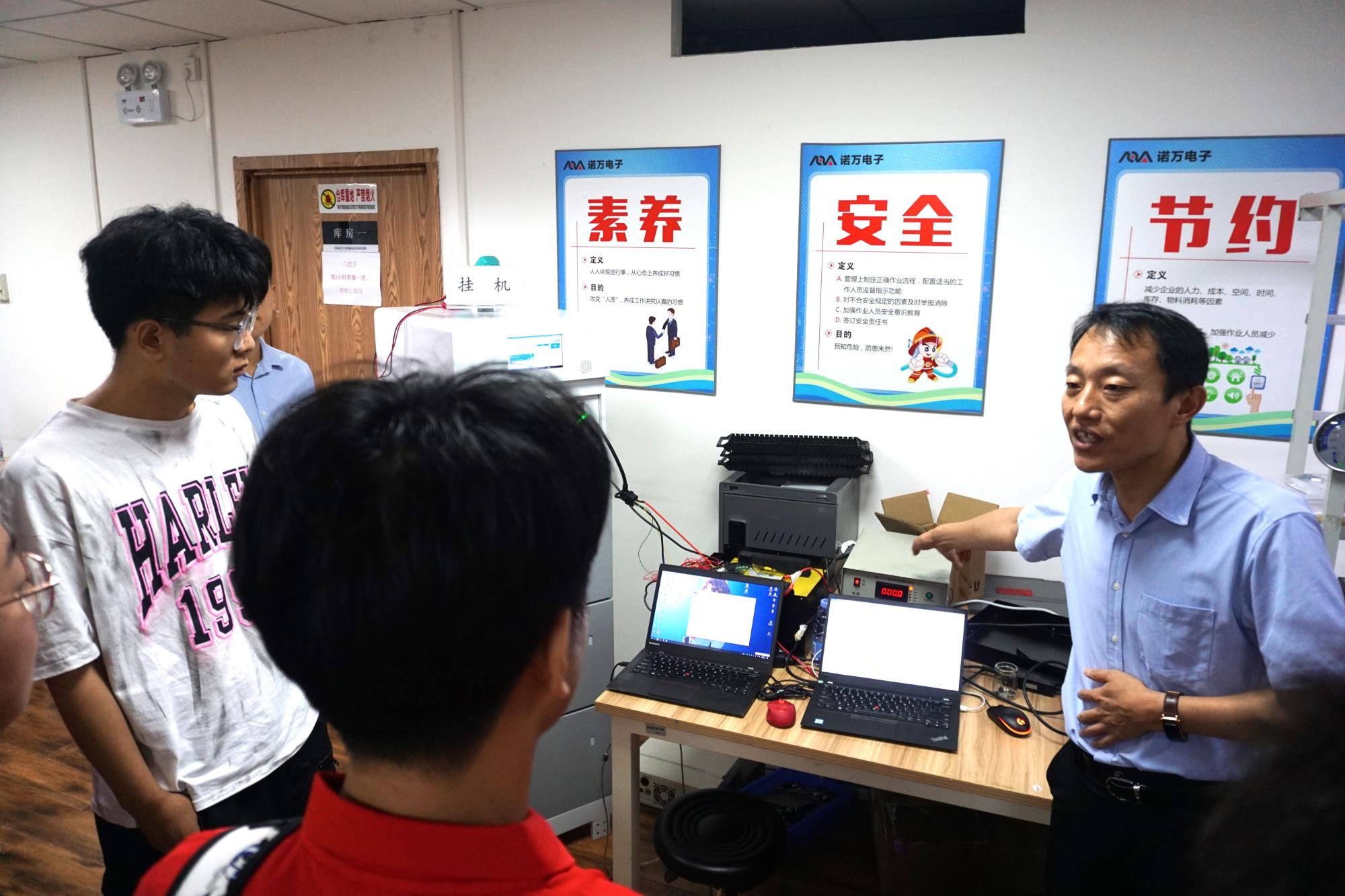 西安诺万电子科技有限公司总经理——2003届西电员工侯雷对学弟学妹们的到来表示热烈欢迎,并对企业的基本情况和应用技术进行详细介绍,带领实践队员参观研发产品,现场讲解电池管理系统的研发制作和产品应用,队员们切实体会到了新能源电池管理系统对储能、机器人、车辆应用、军事应用等多方面的重要作用。侯雷结合自己在西电的经历体会,耐心接受队员们的采访并对学弟学妹们提出了许多切实有效的建议,深化了队员们对母校的爱校荣校之情和强校建校之力。