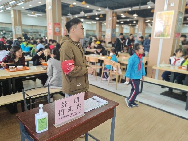 文明餐厅监督员岗负责人董雪菲同学表示:“食堂的工作人员都是持证上岗,食材采购、食物制作、样品留存、安全监督等各环节都有严格要求和规定,可以说安全健康是食堂的代言词。参加本次劳动体验,不仅让我了解了公司餐饮的相关管理流程,更加懂得了后勤师傅们工作的负责和辛劳,是一次难忘的经历。”