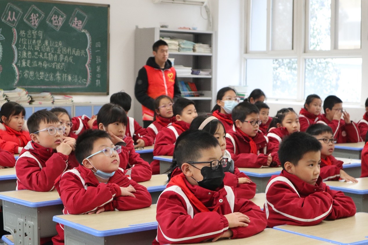 第二堂课,队员们围绕近期感冒流感问题宣讲健康基础知识,内容包括健康的定义、用眼健康、饮食健康、个人习惯、个人免疫等方面,并引导同学们平时加强体育锻炼,养成良好生活卫生习惯,树立健康保护意识。志愿者们用幽默风趣的讲解让同学们在轻松愉快的氛围中学到了更多关于健康的知识。