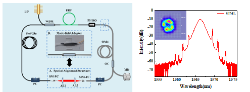 时空锁模可以克服多模光纤中模式色散限制从而实现腔内不同纵模与横模的同时锁定,为提升超快光纤振荡器的输出能量及自由度提供了新的途径。针对目前大多数时空锁模系统空间结构较为复杂且输出光斑模式为基模主导等不足,利用本组之前研究的紧凑型空间对准结构作为可饱和吸收体,实现1.5μm波段高输出能量全光纤时空锁模脉冲输出。