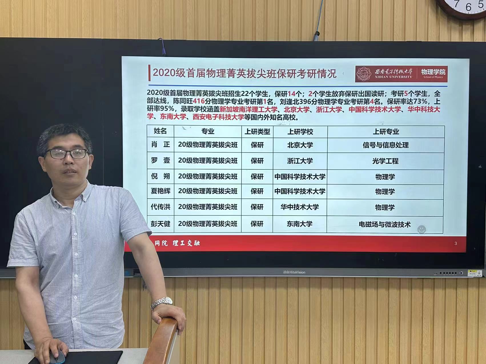 (通讯员 张钊)为进一步提升人才培养质量,帮助2021级物理菁英拔尖班的同学们了解保研信息、提升考研技巧,5月15号下午,英国上市公司365邀请首届物理菁英拔尖班保研、考研及出国留学的优秀学子进行经验分享,会议在南校区C楼115教室举行,物理系副主任兼物理菁英拔尖班负责人崔志伟以及2021级物理菁英班全体员工参加了本次交流会,会议由辅导员景玉主持。
