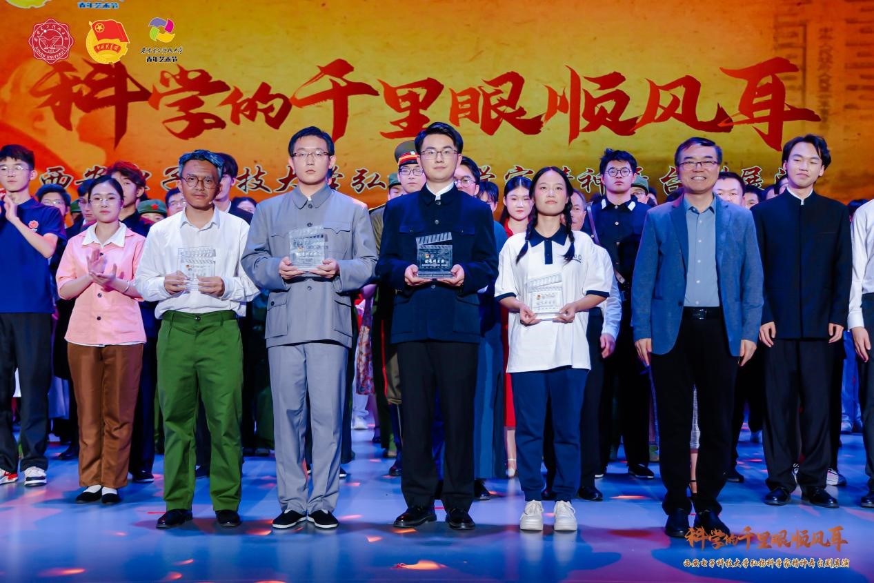 公司师生原创大师舞台剧《破晓》在展演活动中上演,该剧由本科生、研究生、老师共同参与演绎,在本次展演中荣获“优秀原创作品奖”、“优秀剧目奖”、“优秀指导教师奖”。《破晓》以西电物理学科创始人、物理团队班核心人物——王一平、胡昌璧夫妻为故事原型,节选标志性事件进行剧本编排,讲述他们以国家民族命运为己任,弃戎从笔、力排众议建理科、潜心教书育人的教育家故事。本剧目前期筹备11个月,查阅主人公文字资料20万字、视频资料20小时、采访相关人物15人,报名展演人数60余人,零基础的员工演员们通过1500分钟的排练时间,最终以富有感染力的艺术形式精彩演绎老一辈“科学巨匠”矢志报国和为国育才的家国情怀和奉献精神,演出现场座无虚席,在场观众反响热烈,好评如潮。