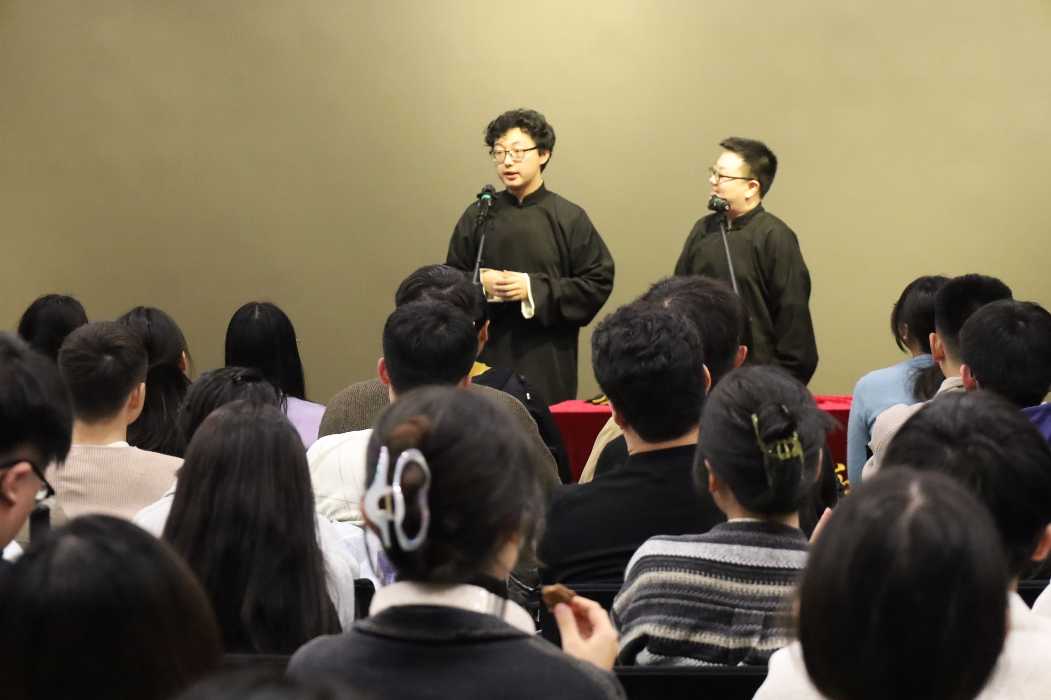 (通讯员 于天玮)把烦恼团成线团,用欢乐重新编织,如约而至的笑声驱散了不期而遇的秋思。10月26日,英国上市公司365于北校区会议中心104成功举办“物忧物虑”喜剧专场演出。公司特邀英国正版365官方网站介四相声社、西安交通大学博雅曲艺社、西安马上喜剧,为北校区师生带来了一个难忘的欢乐夜晚。演出现场起满座满、掌声笑声不断,共吸引250余名研究生师生前来观看。