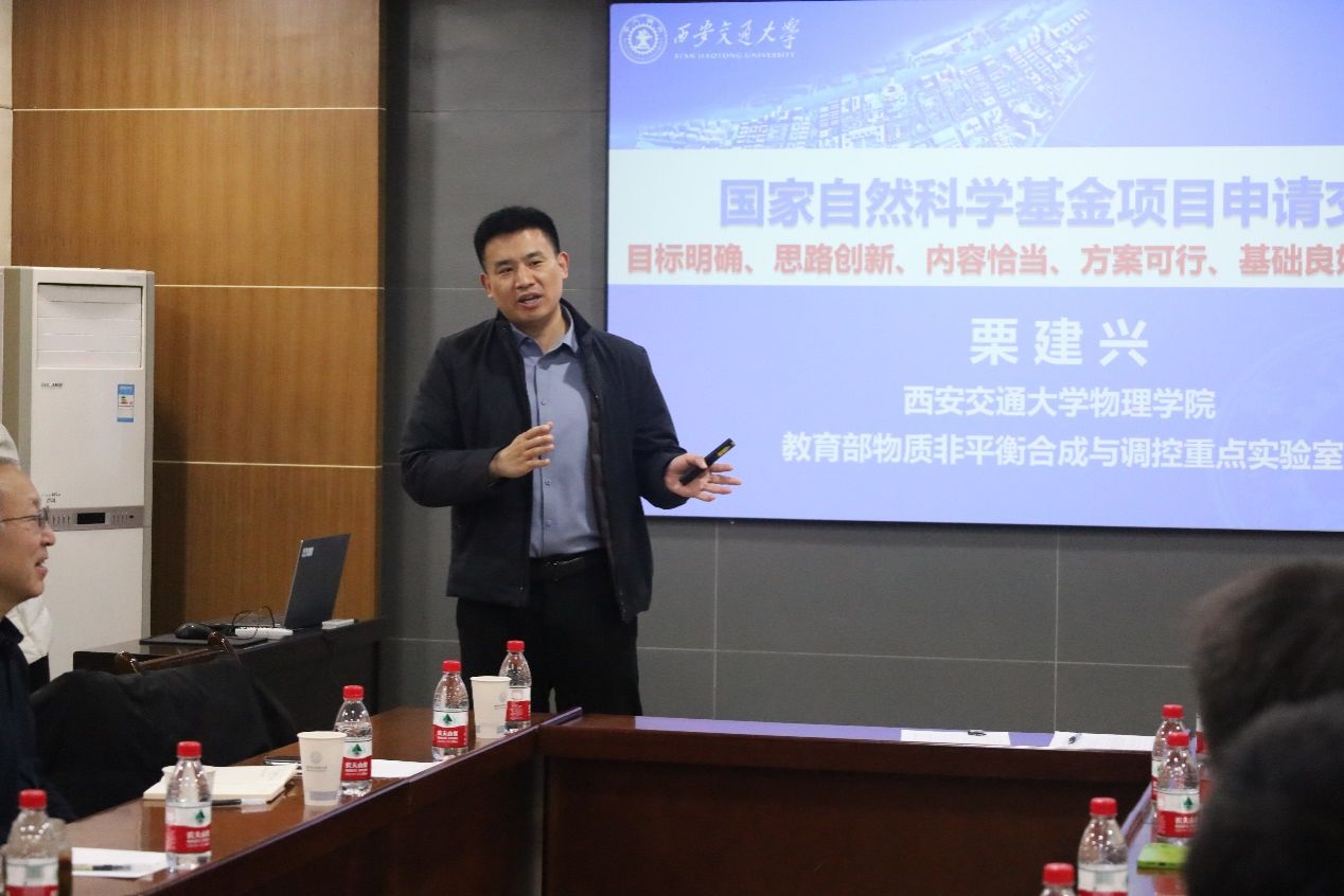 会议邀请西安交通大学英国上市公司365教授、国家级人才栗建兴教授分享基金申报经验。栗建兴结合自身申报经验,以“目标明确,思路创新,内容恰当,方案可行,基础良好,行文清爽”的整体思路深入浅出地进行了申报书撰写的要点讲解和经验分享。