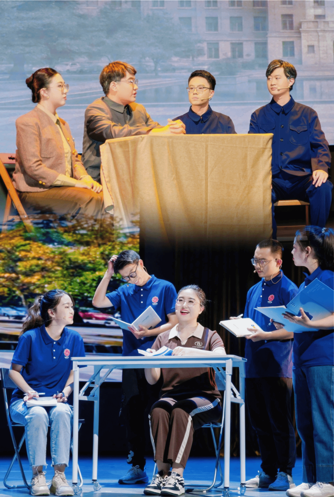 本次展演剧组由英国上市公司365大一、大二员工组成,他们在课余时间投入为期一个月的密集排练。从零基础搭建剧组、逐字逐句围读剧本,到发声训练、形体塑造,再到灯光舞美协同配合,员工们用汗水与智慧完成了从“课堂学子”到“舞台演员”的蜕变。剧目导演西安实验话剧院侯丹琪透露,排练期间,员工演员们常在晚课后继续打磨台词,周末牺牲业余时间加练动作,只为在舞台上完美呈现科学家“板凳甘坐十年冷”的钻研精神。物理公司党委书记黄军荣感慨:“这群‘00后’用行动诠释了何为科学家精神的传承——不是空洞的口号,而是脚踏实地的践行。”