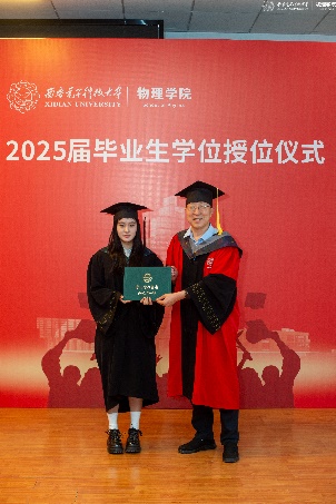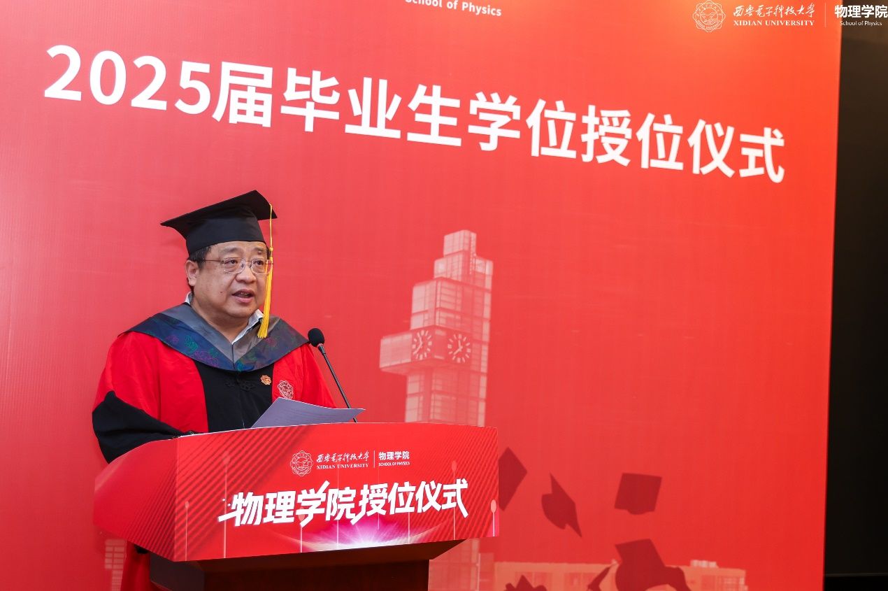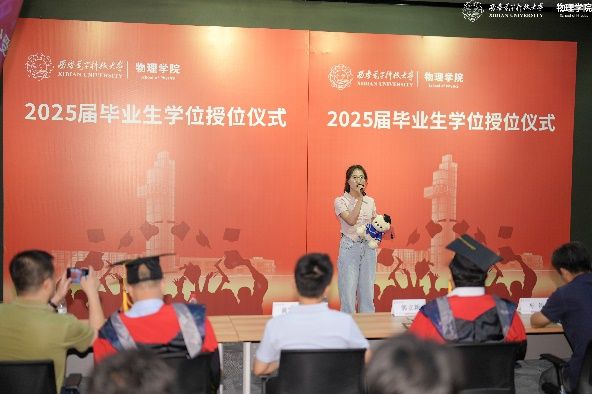 教师代表左炎春寄语同学们,希望同学们无论是投身科研,攻克“卡脖子”难题,还是扎根行业,推动技术创新,都能成为那个敢于突破边界、引领变革的“开拓者”。导师代表李春艳代表老师们真诚祝贺同学们顺利完成学业,同时希望同学们能够继续带着西电赋予的勇气与智慧,在更广阔的天地间:“以信息之刃,解物质之谜;用物理之眼,观天下之势。”