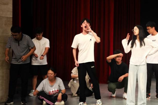 排练期间,演员们以饱满的精神状态迎接每日挑战。尽管许多同学是首次接触话剧表演,但都秉持严肃认真的态度,通过练习发音、绕口令、诗朗诵和形体展示等内容虚心学习表演基本功,反复打磨台词与人物表演细节。西安话剧院余燕妮导演通过游戏互动与理论讲解相结合的方式指导排练,帮助同学们放松身心、排除杂念,引导大家以自然真挚的状态融入情境,让角色精神世界更显真实丰满。据悉,该话剧将于10月在王一平先生诞辰百年之际与广大师生见面。