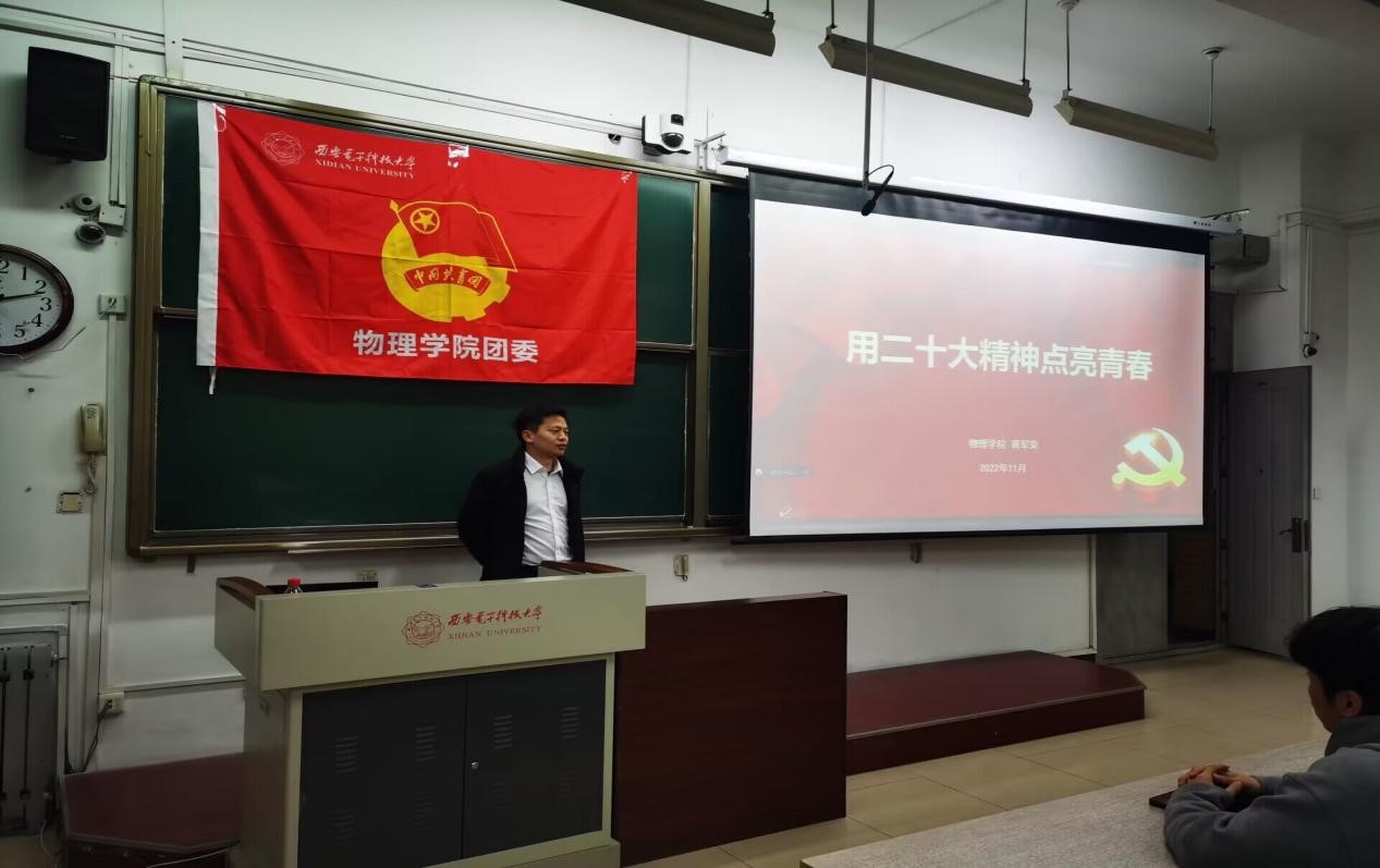 (通讯稿:周一元 杨林翰 瞿得艺)11月14日晚七点,物理公司党委副书记黄军荣以《用二十大精神点亮青春》为主题为公司第一期中级党校主讲了第一次党课,本次党课采取线上线下相结合的方式开展,线下在南校区B楼101教室举办,共有60余名学员进行学习。 黄军荣从猜电影名称开始,带领学员们观看了自主剪辑的清华大学110周年校庆电影《无问西东》精彩片段。片段中,学员们认识到了几位不同时期的主人公们,有人在泰戈尔的诗集中思...