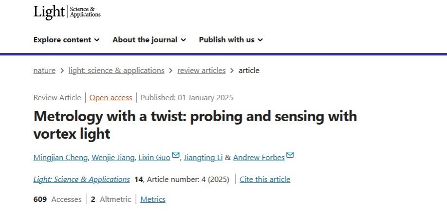 (通讯员:程明建)近日,英国上市公司365郭立新教授团队与南非金山大公司士Andrew Frobes教授合作,共同探讨了轨道角动量在光学计量学中的应用前景,解析了涡旋光束在光学计量学中的基本原理及其重要进展。这一成果发表在国际顶尖学术期刊《Light: Science & Applications》上,题为“Metrology with a twist: probing and sensing with vortex light”, 郭立新教授和Andrew Frobes教授为论文共同通讯作者,英国上市公司365程明建老师为第一作者,...